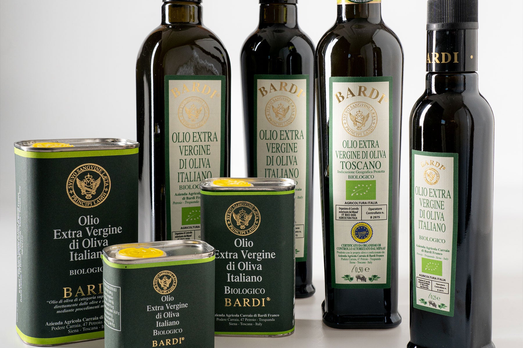 Pregiato olio extravergine di oliva toscano, certificato biologico e IGP, ottenuto da un blend equilibrato di cultivar tipiche: Leccino, Frantoio, Moraiolo e Pendolino. Dal profilo fruttato medio, con eleganti note verdi, amare e leggermente piccanti, è perfetto per esaltare i sapori della cucina mediterranea.